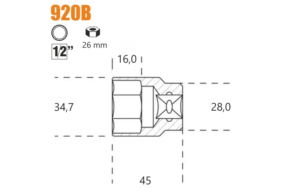 Nasadka dwunastokątna z gniazdem 1/2'', model 920b, 26mm